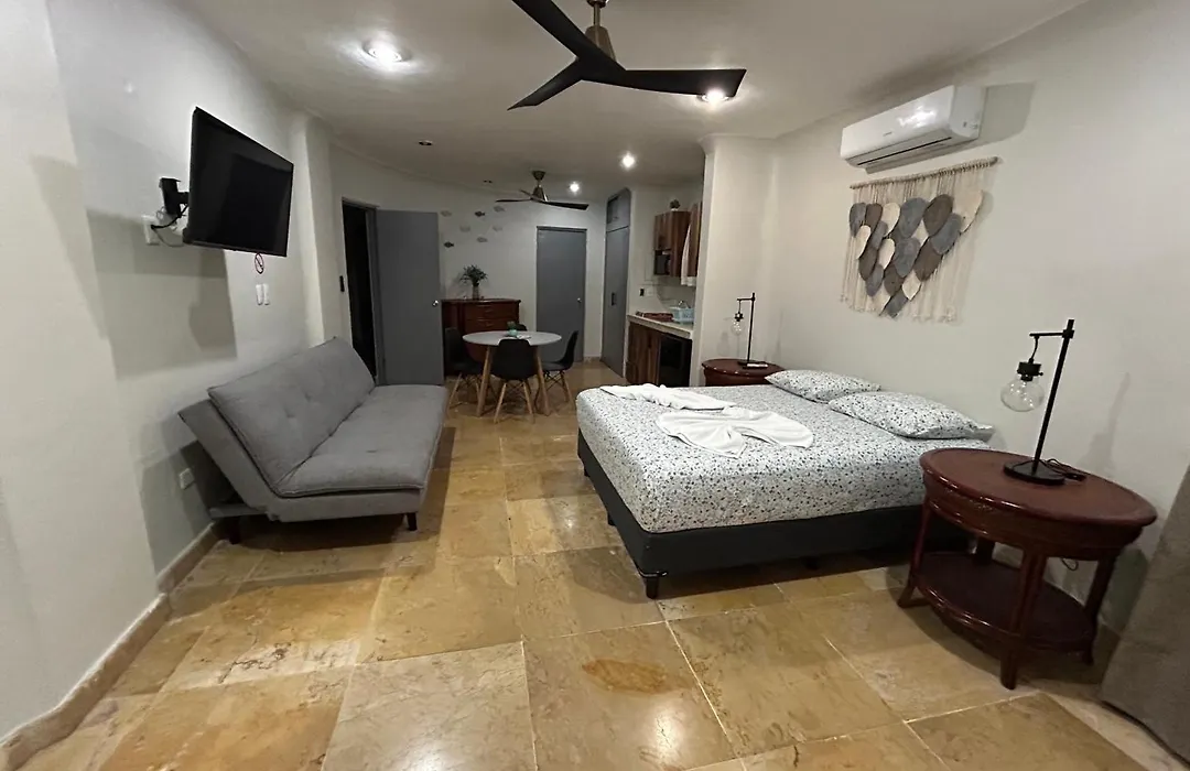 Located a few steps from the Quinta Avenida and the Quinta Alegria Shopping Mall, the 60 m² Blue Angel 10 A Unos Paso De La 5Av Apartment Playa del Carmen features views of the garden. Guests can make use of Wi-Fi for both business and leisure purposes.